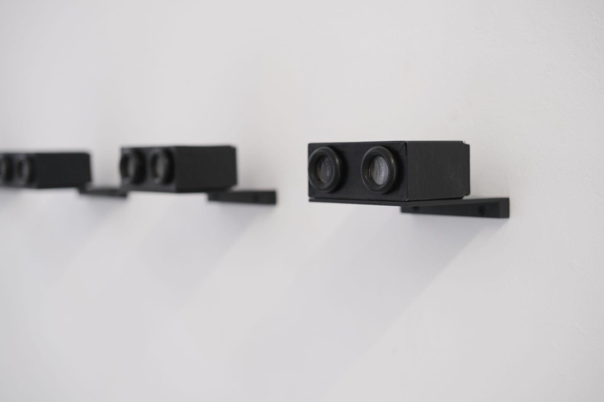 ‘There where you think’ is a series of stereoscopic images in which the artworks and situations I have imagined while sitting still are restituted to the contexts that inspired them.