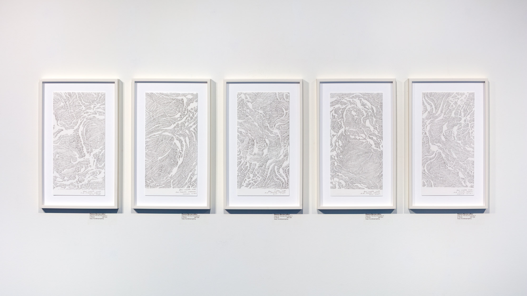 Studies for The Very Rich Hours (1-2-3-4-5), fineliner on paper, 39 x 24 x 3 cm (with frame), 2023-2024